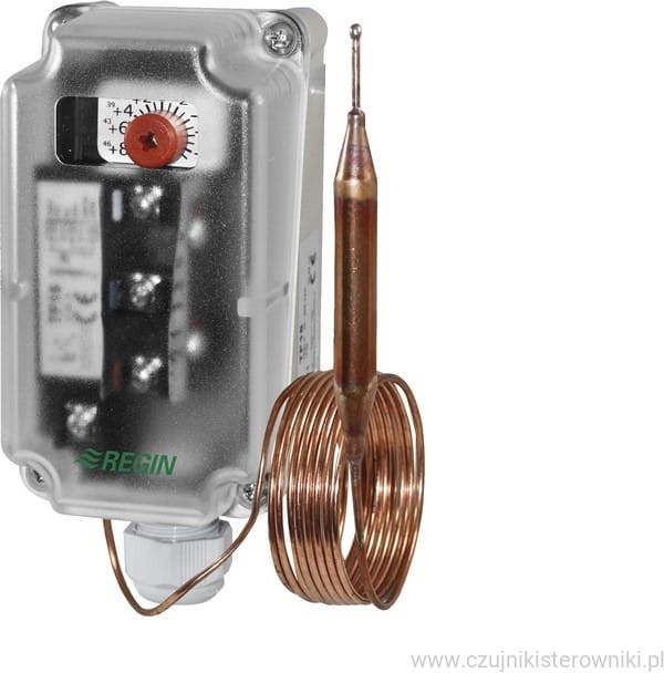 FT firmy Regin to wysokiej jakości seria frostatów do zabezpieczeń przeciw zamrożeniowych w systemach wentylacji, grzewczych i chłodzenia. Frostat posiada funkcję ręcznego resetu. Po zadziałaniu (przy zadanej nastawie) wymaga ręcznego odblokowania.